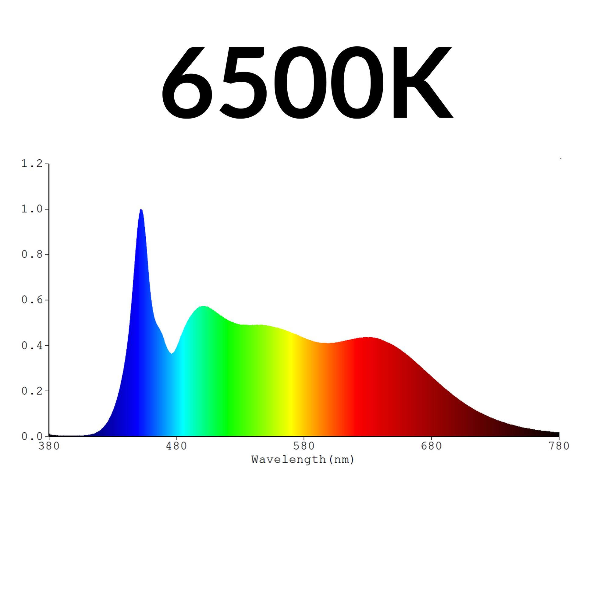 The 6500K spectrum comes very close to natural daylight, truly simulating what plants have adapted to over many generations. It is especially well suited for seedling growth, and helps to prevent them from becoming "leggy" as the spectral dosage perfectly matches that of natural daylight.