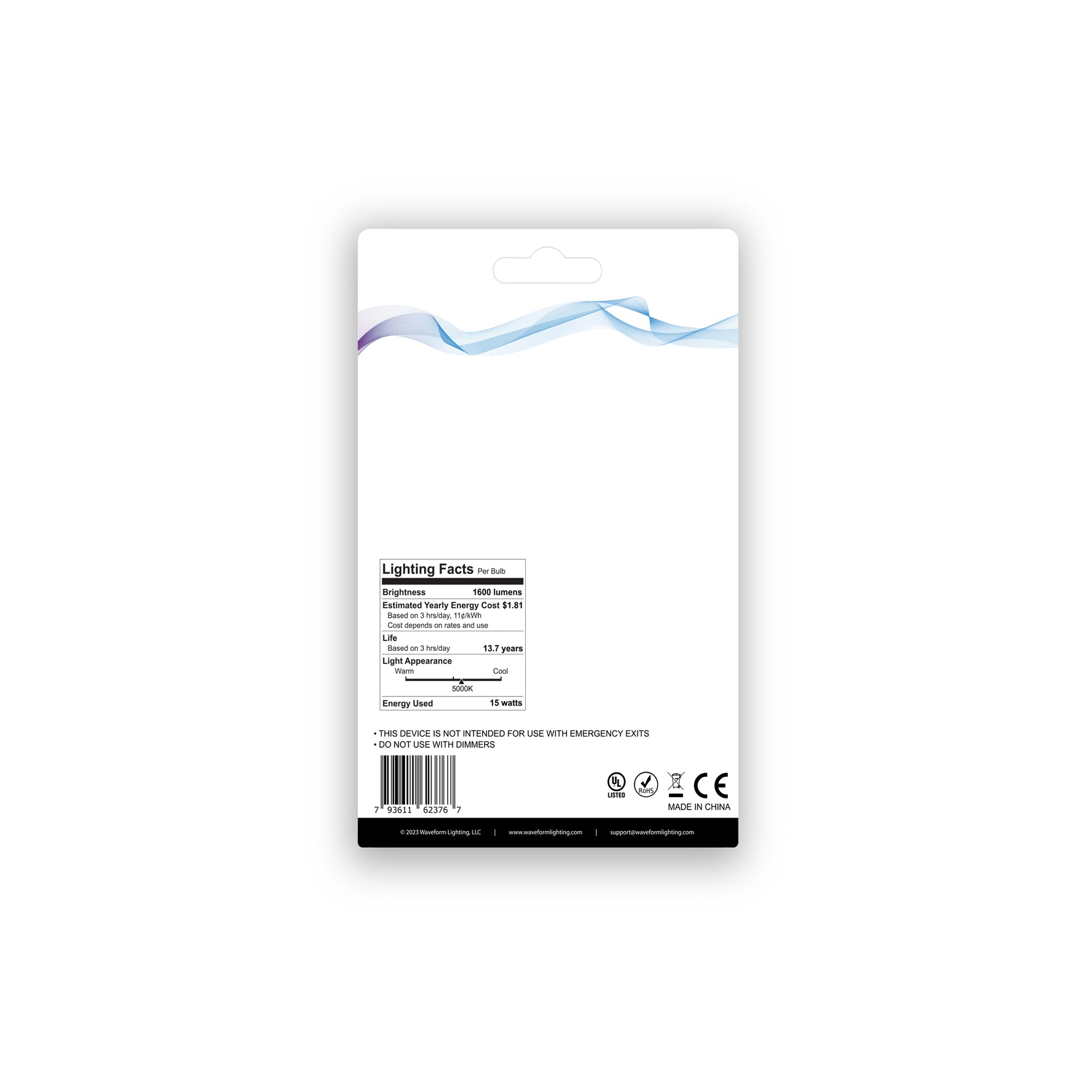 - Not dimmable, not suitable for enclosed fixtures