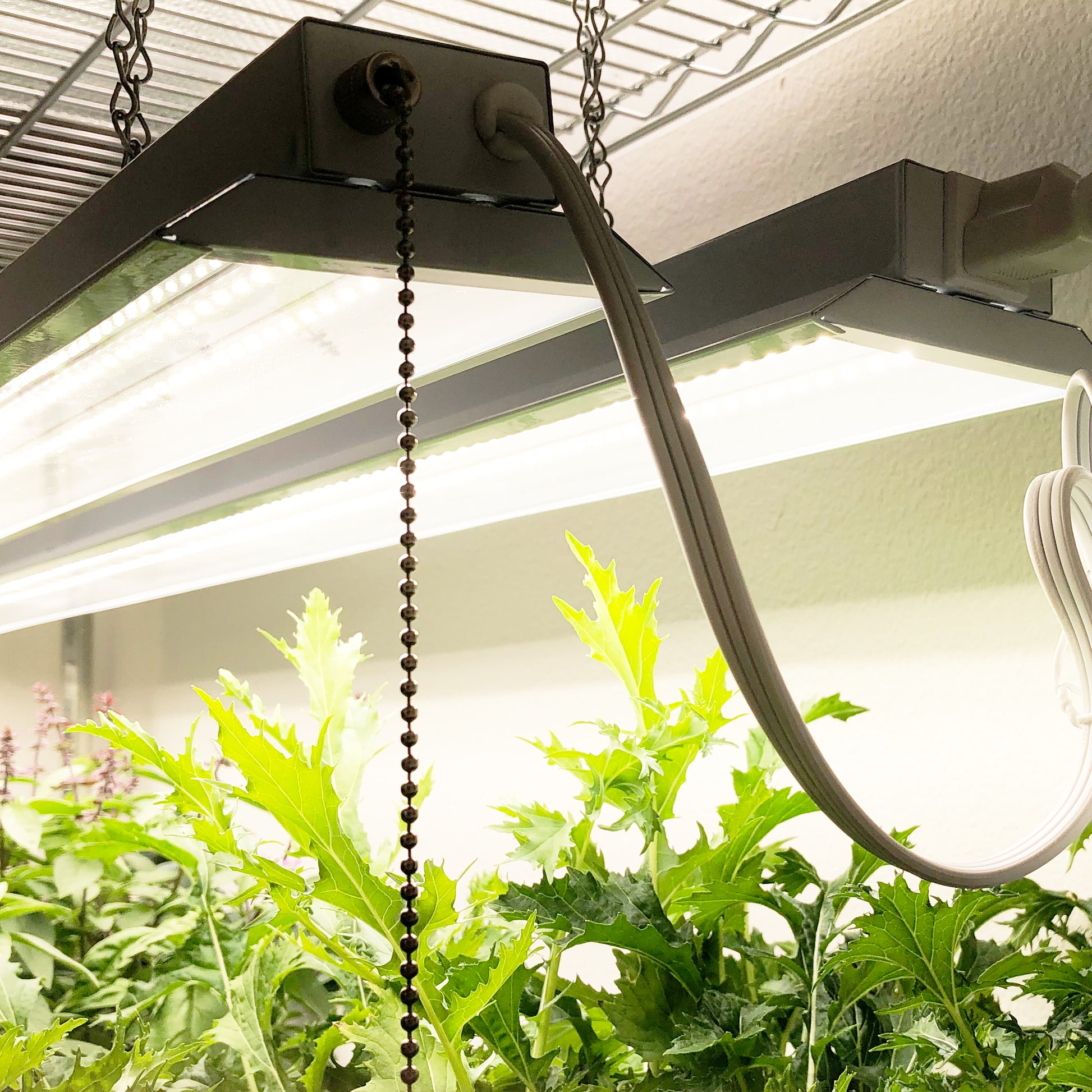 Simply hang the grow light fixture from a vertical shelf unit, ceiling beam or grow light tent frame using the included hanging hooks.